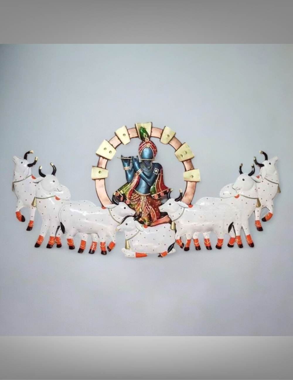 Krishna With Herd Metal Wall Decor 56*28 Inches