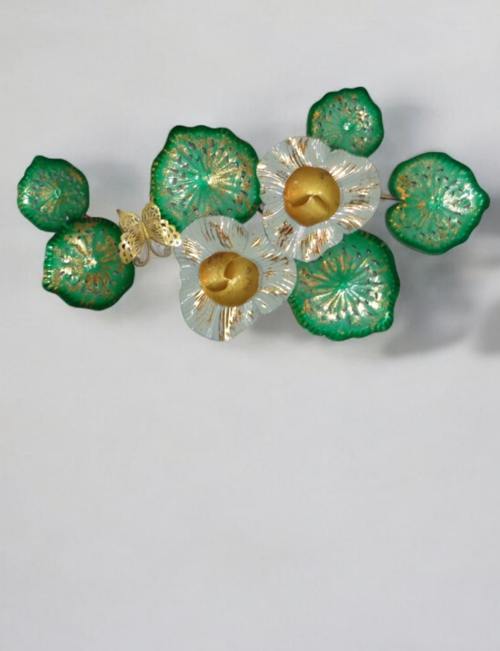 White Floral with Leaves Metal Panel Wall Decor 36*19 inches